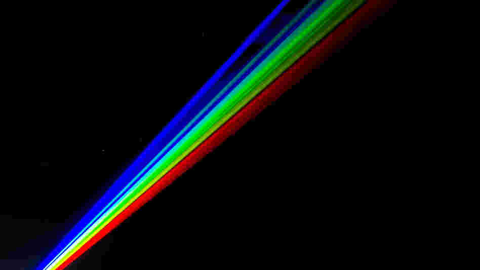 This laser's just pretty, not powerful: Artist Yvette Mattern's laser rainbow in Whitley Bay, England, earlier this year.